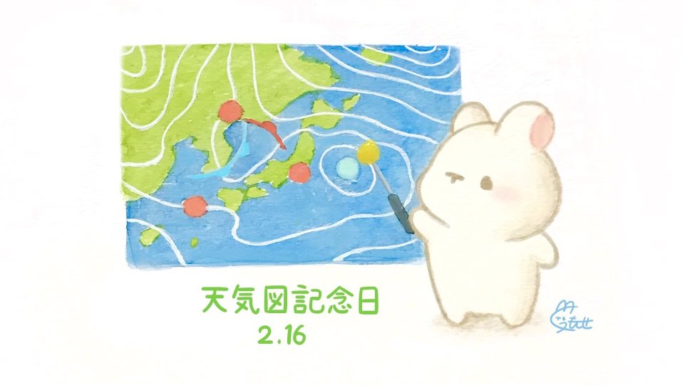 くぅもんせ Na Twitteri おはようございます 今日は 天気図記念日 だそうです 気象予報士になったうさぎ 2月16日 今日は何の日 天気図記念日 天気予報 うさぎ 水彩 イラスト